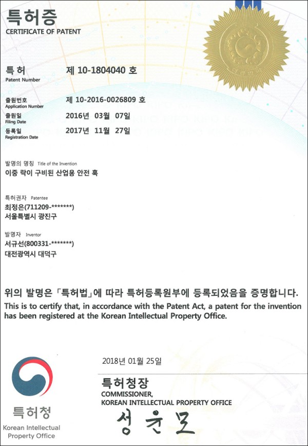 특허 10-1804040호 최정은님에게 권리이전 완료
