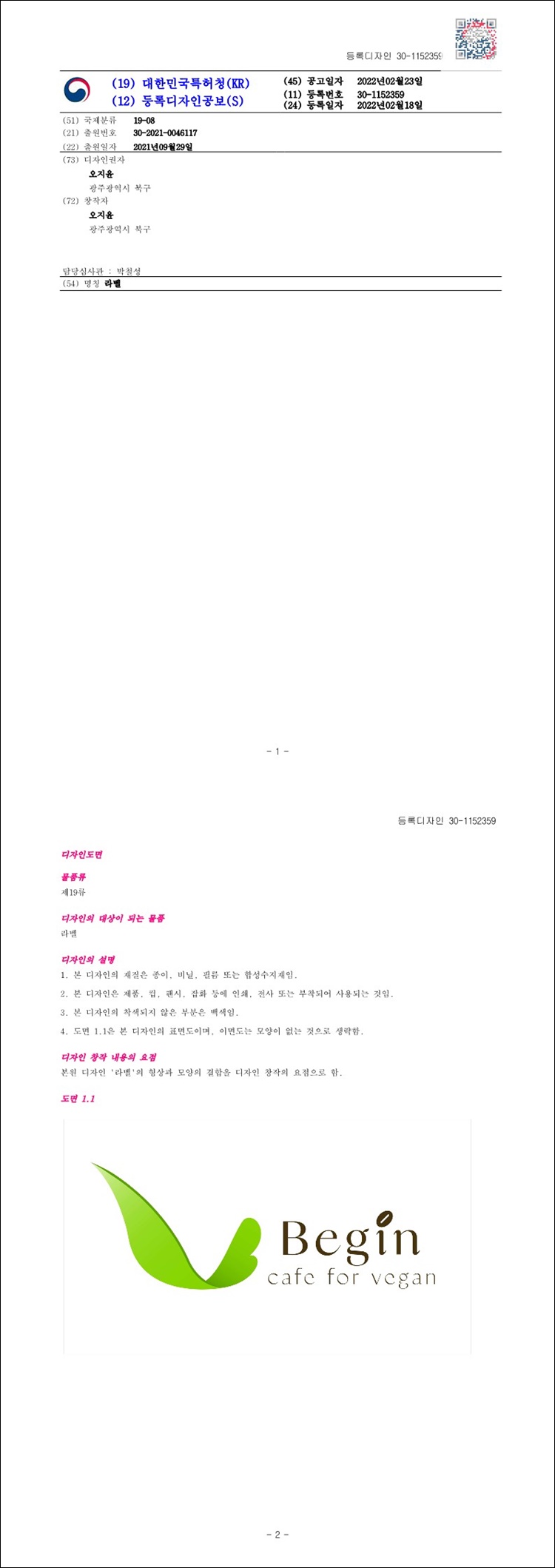 디자인등록 제30-1152359호(라벨, 오지윤, "전속")