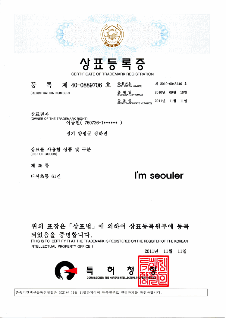 ※ 존속기간 만료일 : 2031년 11월 11일(갱신 가능)